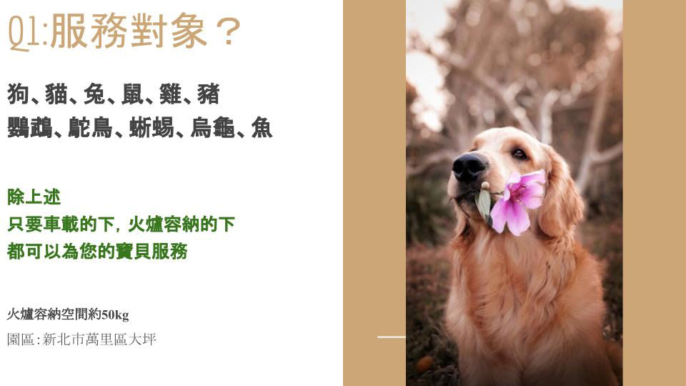 也增加了寵物火化、寵物殯葬禮儀的服務